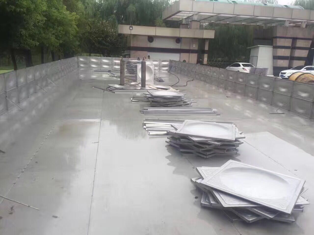 此項(xiàng)目無頂水箱尺寸為6*2.5*1.5 ,我司焊工耗時(shí)5天左右完工。