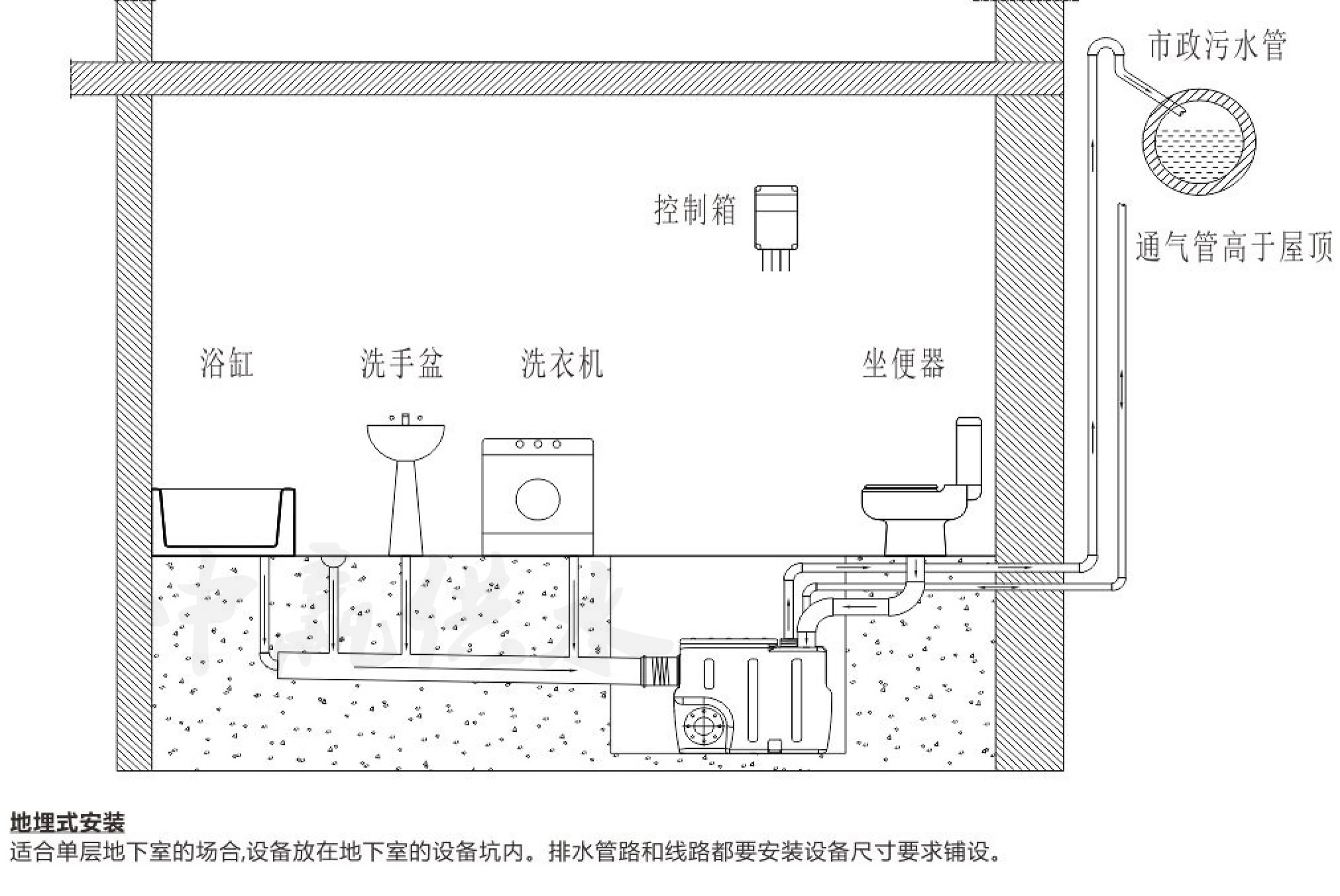 各類建筑地下室、辦公樓地下室、地鐵車站、地下商場等各類地下建筑的污水的排放問題使地下室自動污水提升器應(yīng)運而生,其排水過程是污水通過整套設(shè)備的入口自流進入集水箱,到達設(shè)備的啟動水位后,設(shè)備自動啟動,將污水提升排放到市政管網(wǎng)。下面中贏供水小編來為大家講解地下室自動污水提升器安裝示意圖、使用方法。