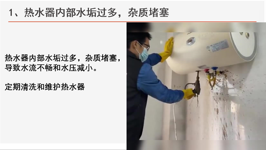 1、熱水器內(nèi)部水垢?,雜質(zhì)堵塞,導致水流不暢。