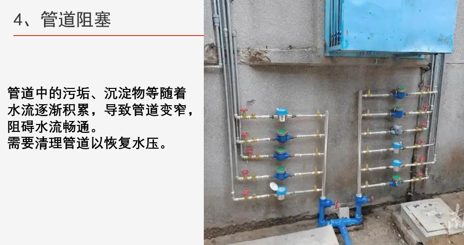 管道中的污垢、沉淀物等隨著水流逐漸積累,導致管道變窄,阻礙水流暢通。