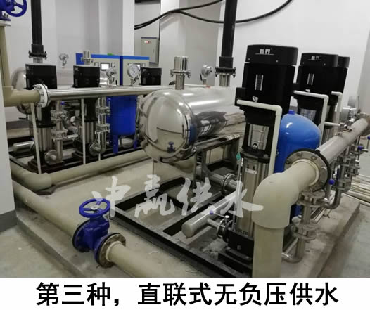 第三種:是采用無負(fù)壓的供水設(shè)備,直接從自來水管道加壓將水送至用戶家中。這種給水方式,沒有二次供水水箱,是目前為衛(wèi)生的一種給水方式。