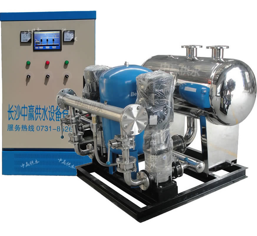管網(wǎng)疊壓箱式無負(fù)壓變頻供水設(shè)備是中贏供水集團(tuán)于2010年研發(fā)生產(chǎn)的一種新型加壓供水設(shè)備,通過微機(jī)控制變頻調(diào)速來實(shí)現(xiàn)恒壓供水。首先可以根據(jù)用戶的實(shí)際用水要求,用多少水供多少水,用多少壓力、供多少壓力。并可根據(jù)實(shí)際情況設(shè)定用水點(diǎn)工作壓力,并時(shí)刻監(jiān)測市政管網(wǎng)壓力,當(dāng)壓力低于用戶所需壓力時(shí),微機(jī)自動(dòng)控制子變頻器啟動(dòng),調(diào)節(jié)水泵轉(zhuǎn)速提高,直到管網(wǎng)壓力上升到用戶所需壓力,并控制水泵以一恒定轉(zhuǎn)速運(yùn)行進(jìn)行恒壓供水。當(dāng)用水量增加時(shí)轉(zhuǎn)速提高,當(dāng)用水量減少時(shí)轉(zhuǎn)速降低,時(shí)刻保證用戶的用水壓力恒定。